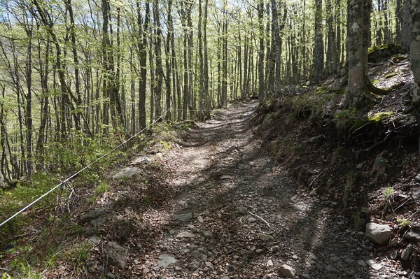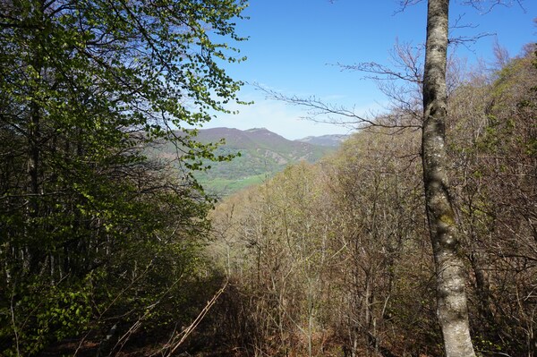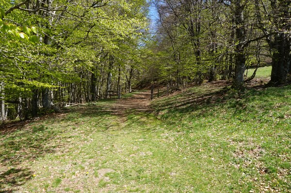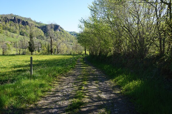 La route descend, mais au premier lacet, je vais la quitter pour une piste en