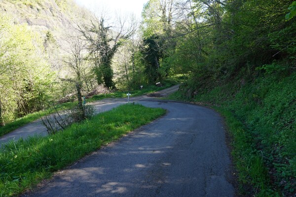 l'embranchement vers le hameau d'Asprat, à gauche.