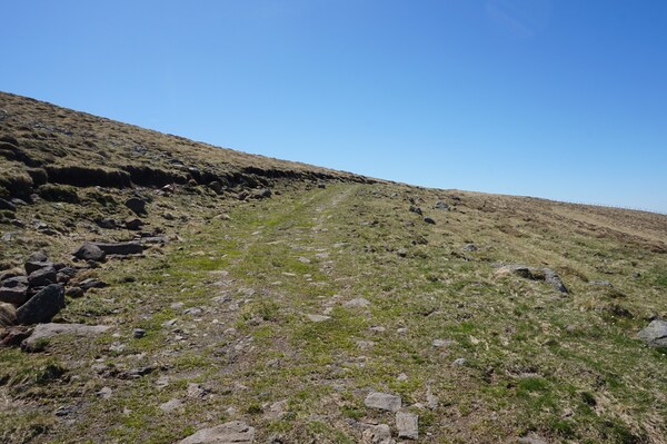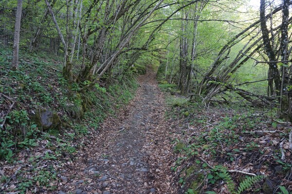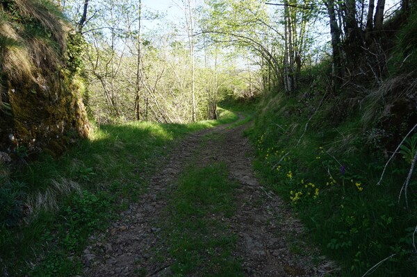 Le chemin s'éloigne de la voie ferrée en continuant à s'élever.