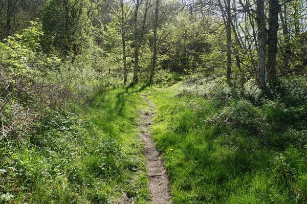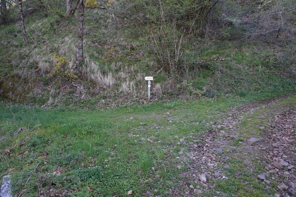Le chemin part sur la droite, sur un sentier plus étroit.