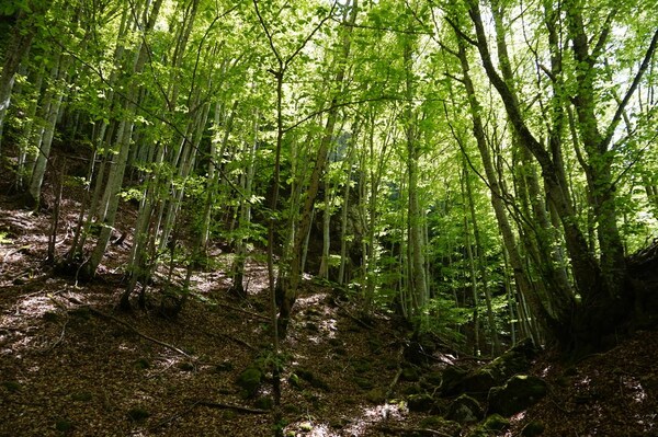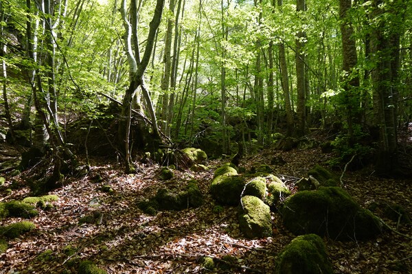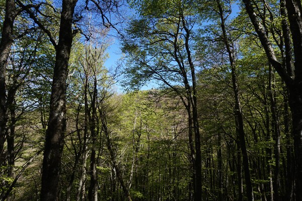 On devine, à quelques mètres, derrière les arbres, la paroi de la falaise, mais