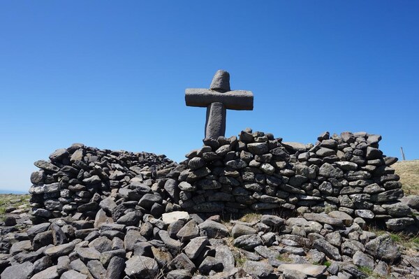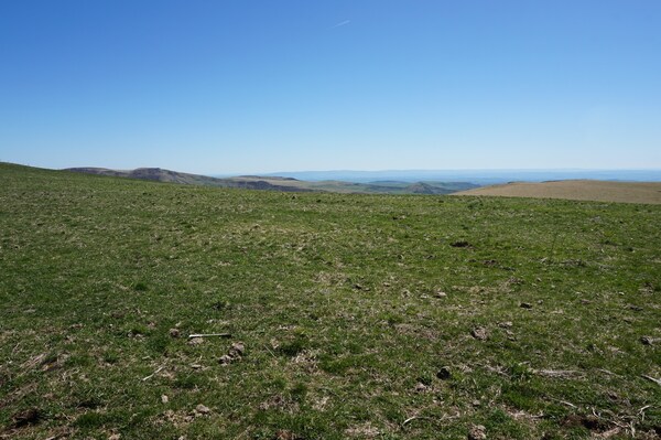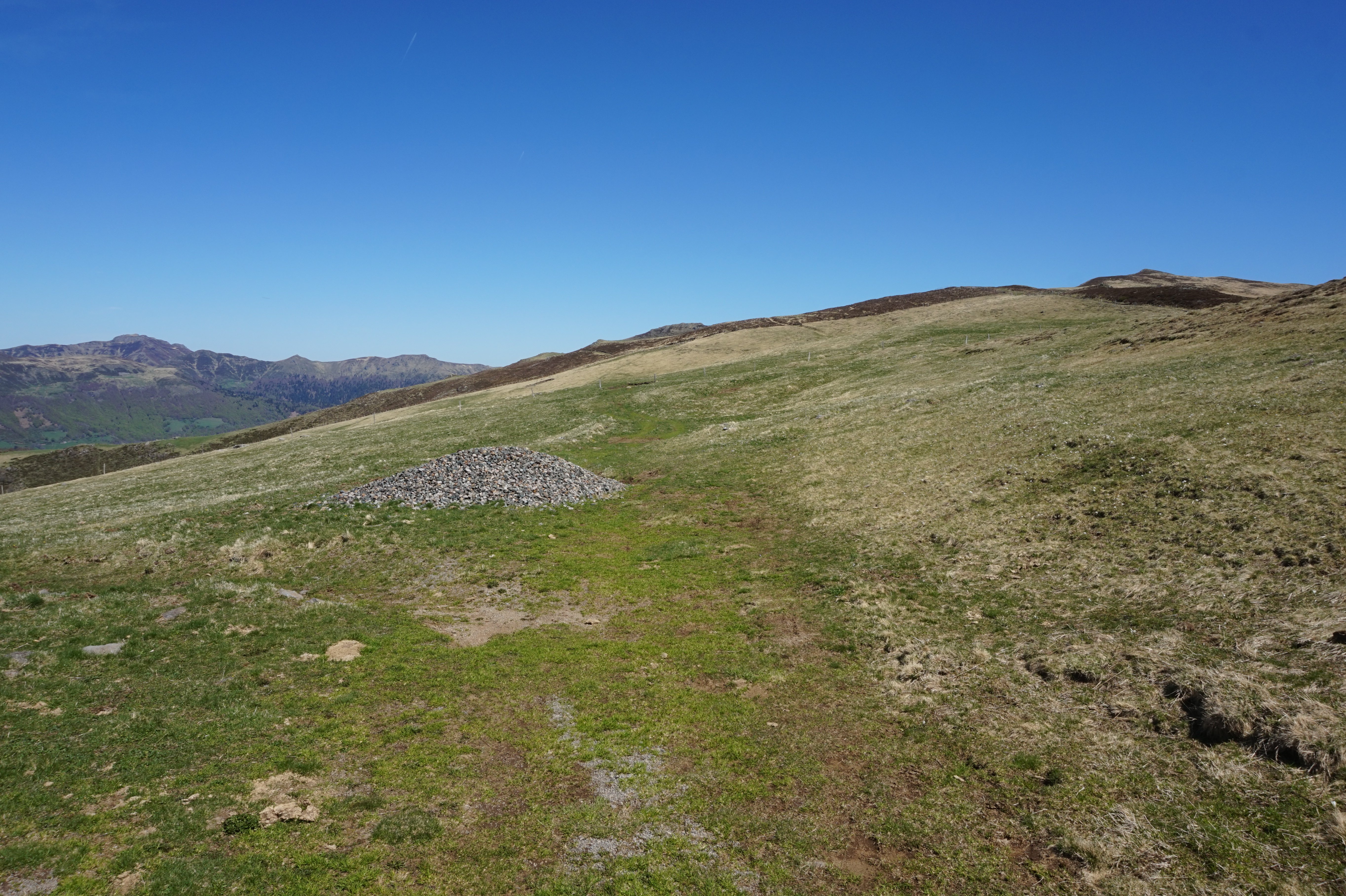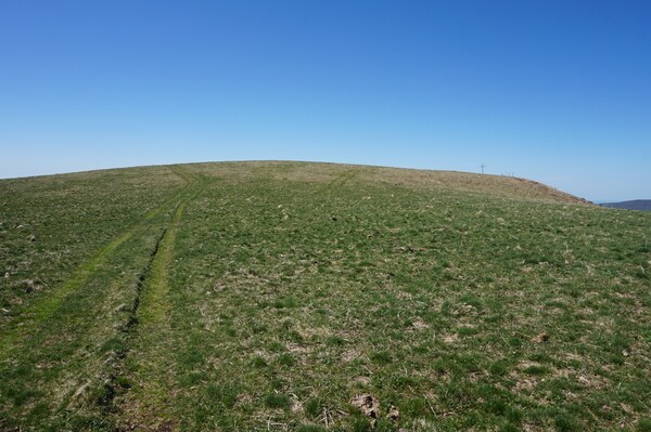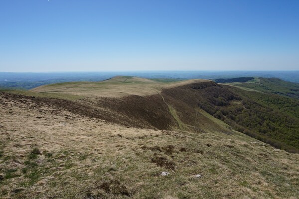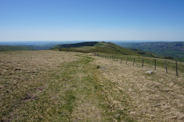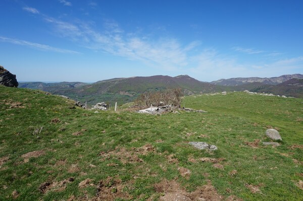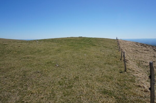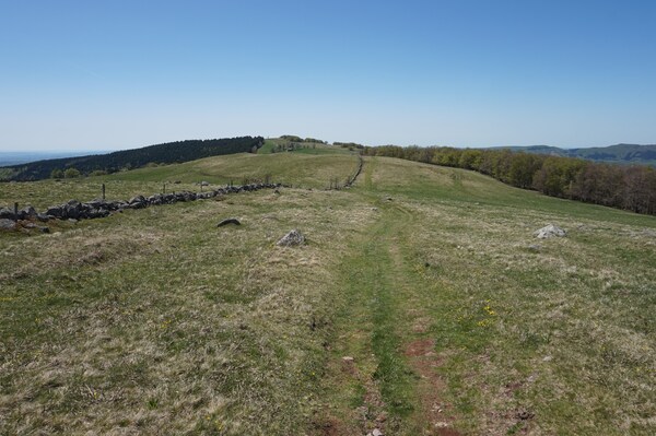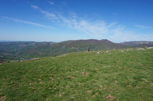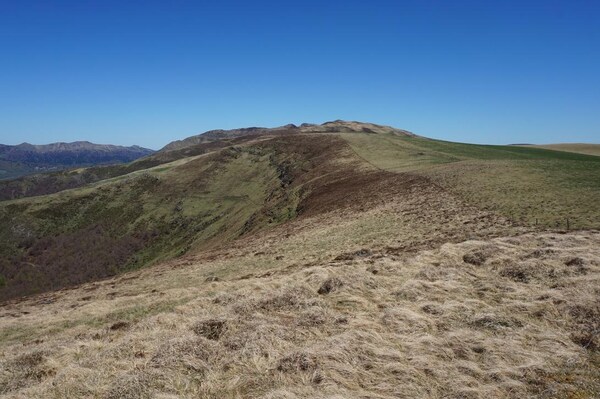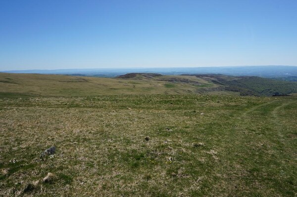 bosse plate plus grise ; au centre, le Puy Chavaroche au loin ; plus à