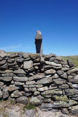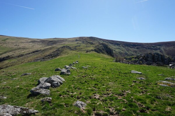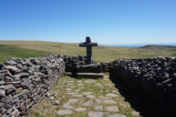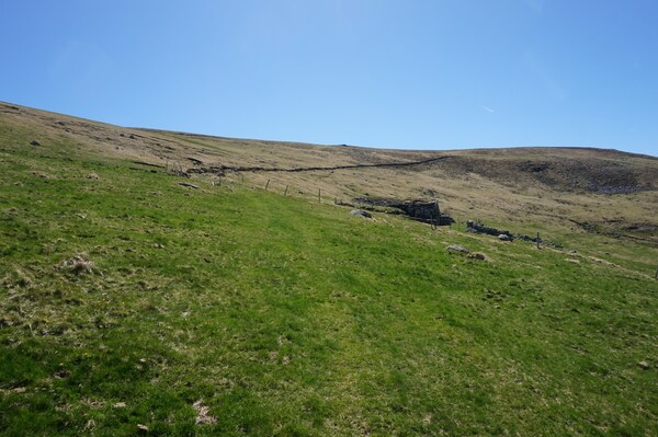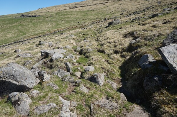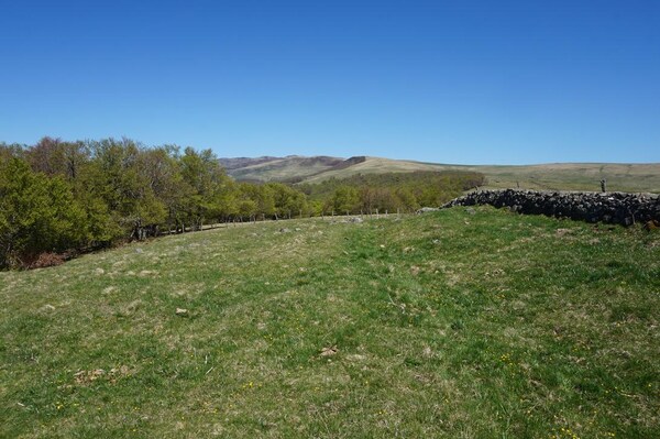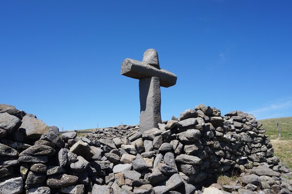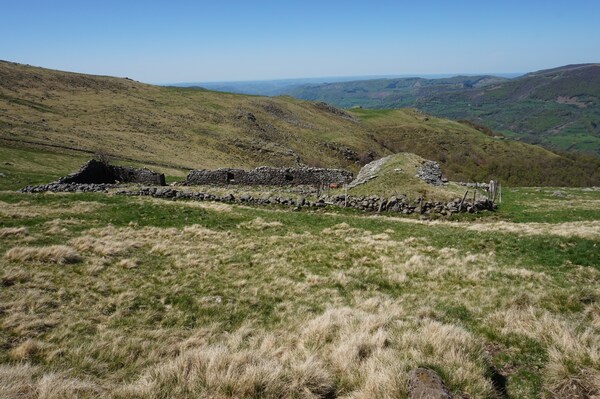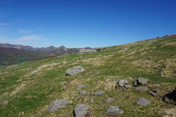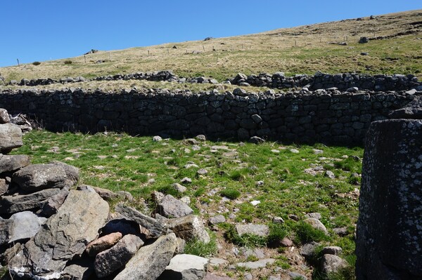 niveau du buron pour le longer entre deux murets de pierre, puis tourne encore