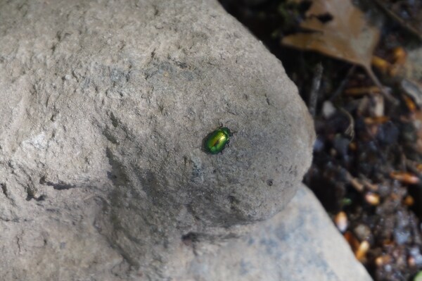 Sur une pierre au milieu du chemin pendant la descente, cet insecte