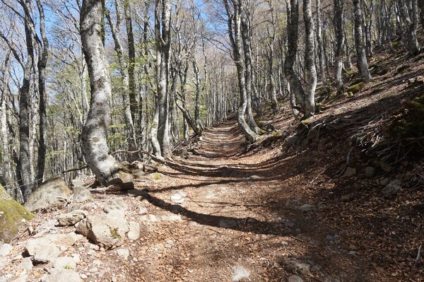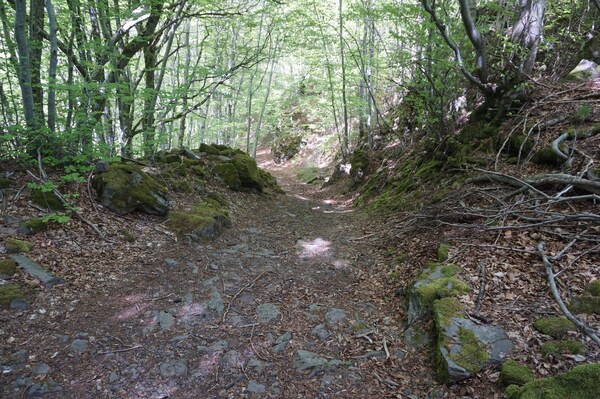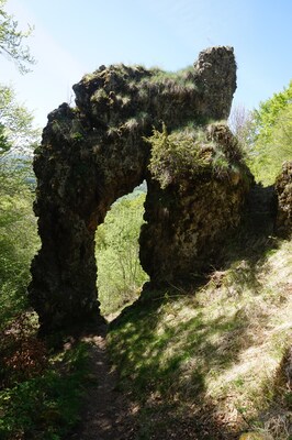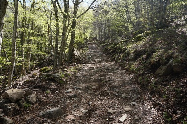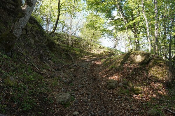 Le chemin s'élève un peu pour franchir un affleurement basaltique.