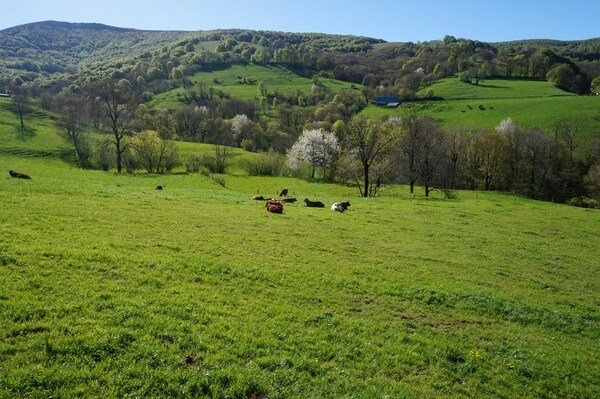 Et, beaucoup plus près, ces quelques vaches profitant du soleil matinal.