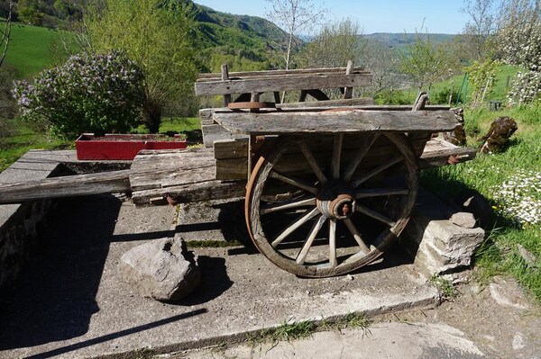 Dans le hameau de Niervèze, en face d'une habitation, une charrette reconvertie