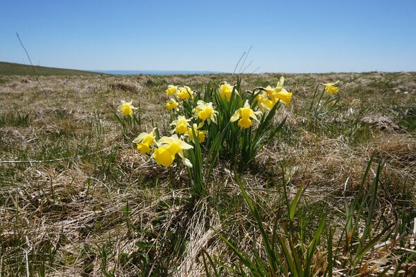 Sur ma gauche, au bout des affleurements rocheux, je distingue le trait blanc de