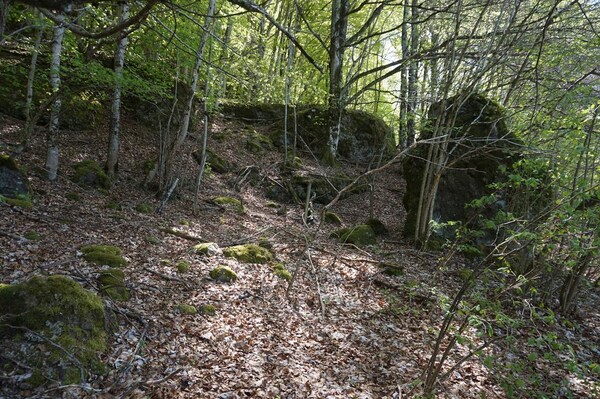 Sur ma gauche, les affleurements rocheux de tout à l'heure.