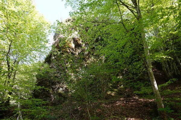 Encore une vue de la falaise, à travers les arbres, qui laisse deviner qu'elle