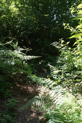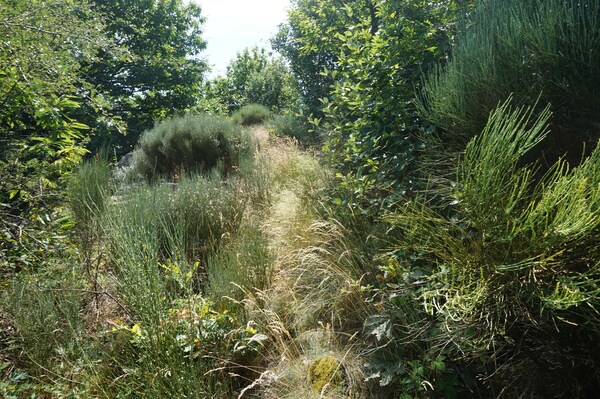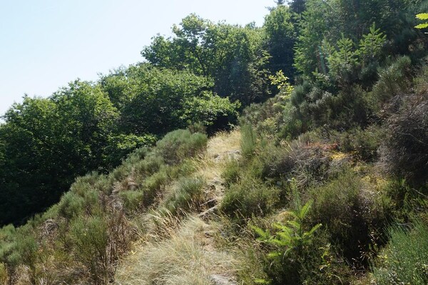 Après le gué, le chemin est presque masqué par la végétation, et en particulier
