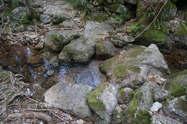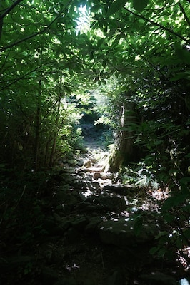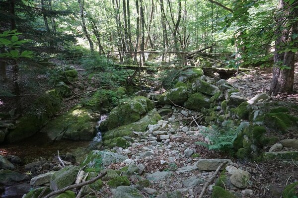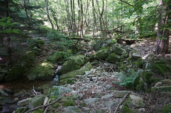 Le chemin doit maintenant franchir un petit ruisseau, à peine visible à cette