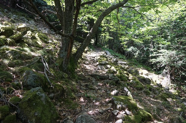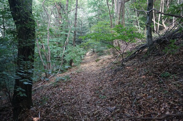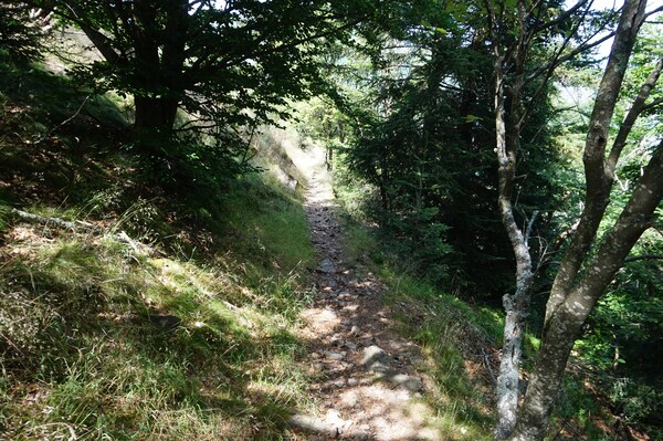 Le chemin n'est pas très large mais continue de s'élever, et s'apprête à sortir