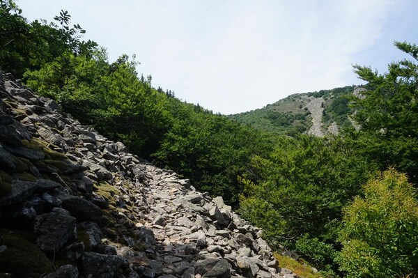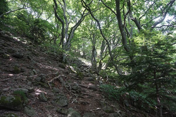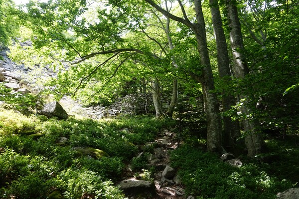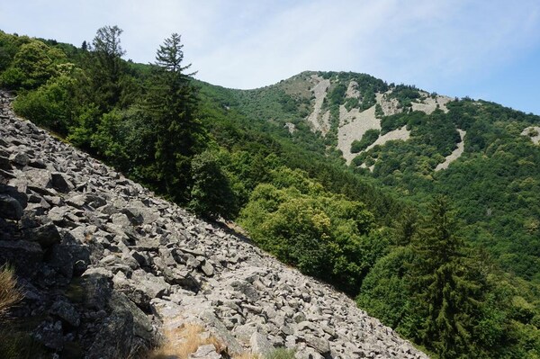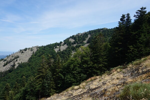 Par endroits, le flanc du Mont Aigu est très rocheux.