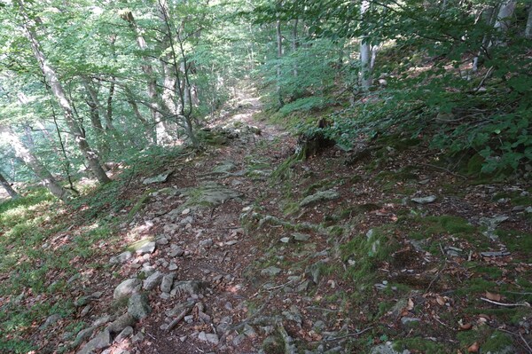 La descente est pénible à cause de la pente, mais n'est en aucun cas monotone.