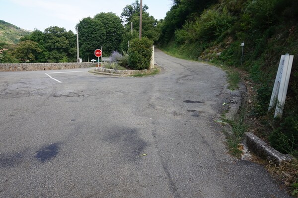 De retour au début du Chemin des Plantades, avec la D19 qui passe à gauche.