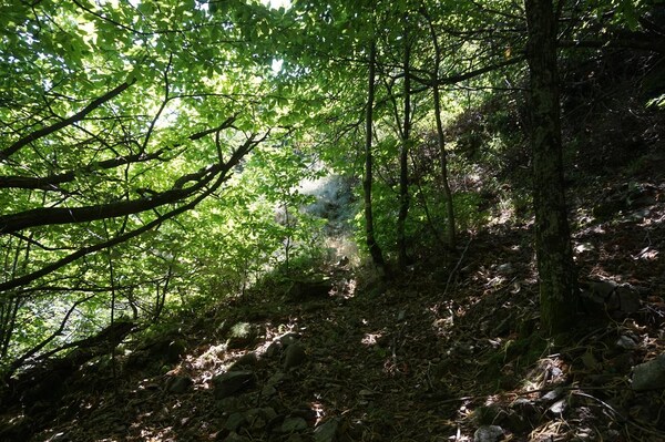 Sur l'autre rive, le chemin repart tout de suite en montée.