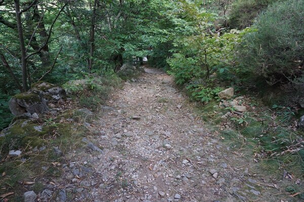 Sans surprise, le chemin est bordé de murs de pierres sèches, ou de ce qu'il en