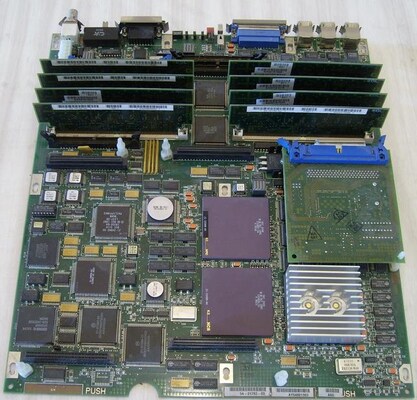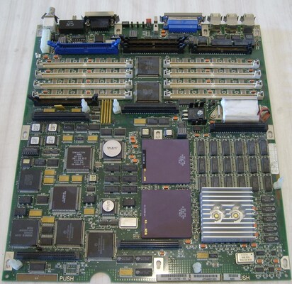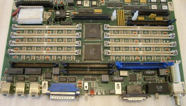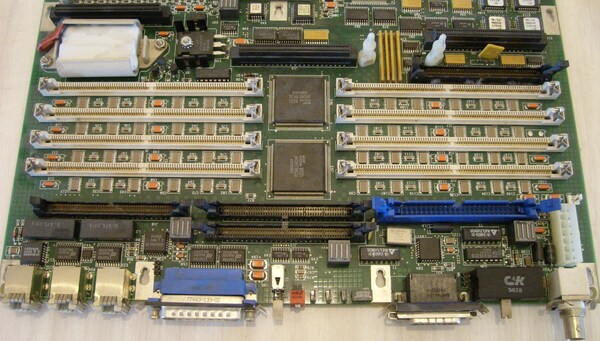 - 10base5 (AUI) and 10base2 (BNC) Ethernet connectors, with a switch to select which one is active.