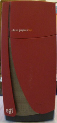 Compared to the other SGI workstation cases, the Fuel is pretty dull. Its red color is quite a departure from the usual blue and green palette used by older workstations (Indigo, Indy, Indigo 2, O2 and Octane), although the first Asterix prototypes (which became Fuel) had their case painted lightblue. The top of the case is flat, unlike the O2 and Octane.